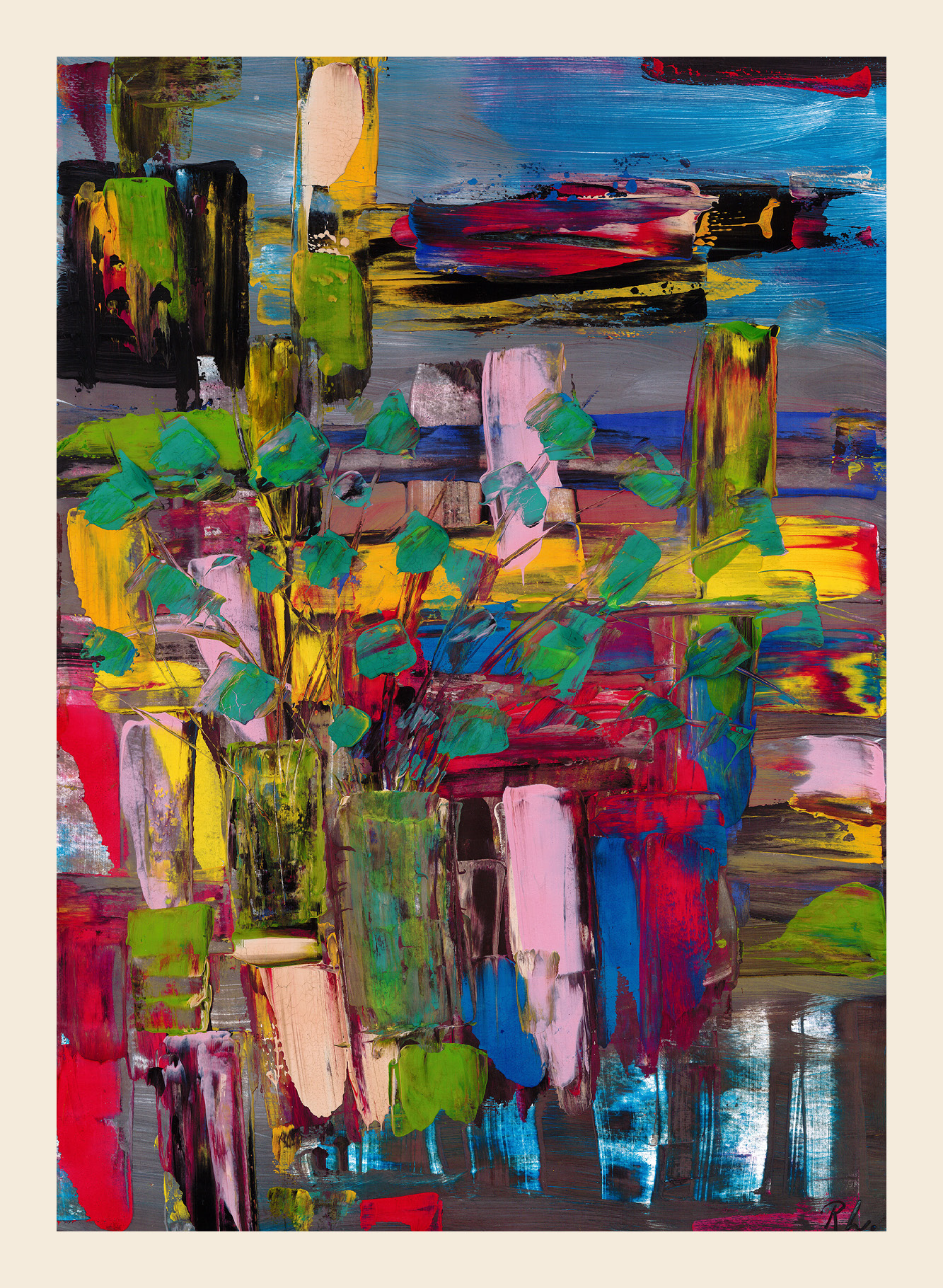 Abstrakt, explosiv, geheimnisvoll und mit versteckter Geschichte oder Sprache. Mit leuchtenden Farben und verschiedenen Techniken verleihe ich meinen Bildern starke Aussagekraft. Idealerweise können viele Menschen beim Betrachten etwas ganz Eigenes für sich interpretieren. In den gemalten Welten sind Momente des Lebens mit seinen Licht- und Schattenseiten festgehalten, die ihren Weg in die Herzen der Betrachter*innen suchen.